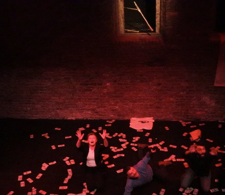 With Show Me Your Wallets I am aiming to offer an audience a journey through a number of different ways to be cast in theatre/performance spaces - with the ultimate goal of interrogating audience culpability in the future we're creating for this earth. There is plenty of audience interaction to investigate their positions as in-active bystanders (how many awful things can we get the audience to cheer for if we start off by making them think it’s a joke?), plenty of onstage participation in the lampooning of Capitalism by willing volunteers (we literally take their money), and a final movement that aims to drop the fun and games and re-centre the audience members as themselves - existing in a bizarre apocalyptic Anthropocene that they slowly recognise is the present.